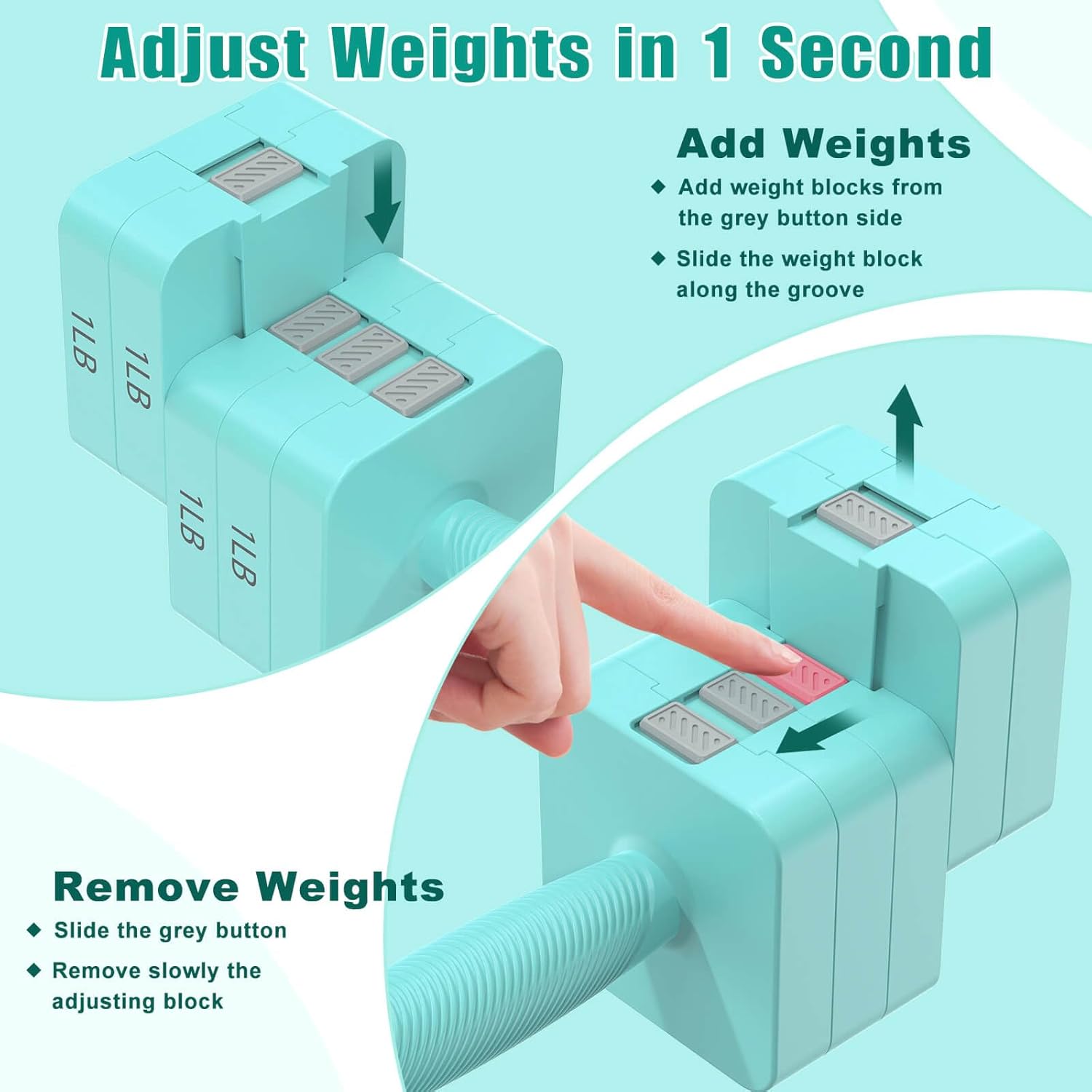 5-in-1 Adjustable Weights: RINREA adjustable dumbbell set has 5 weights accessible from 3lb, 5lb, 7lb, 9lb, to 11lb. A dumbbell hand weight is the same as 5 mounted dumbbells and won’t take up a lot area.