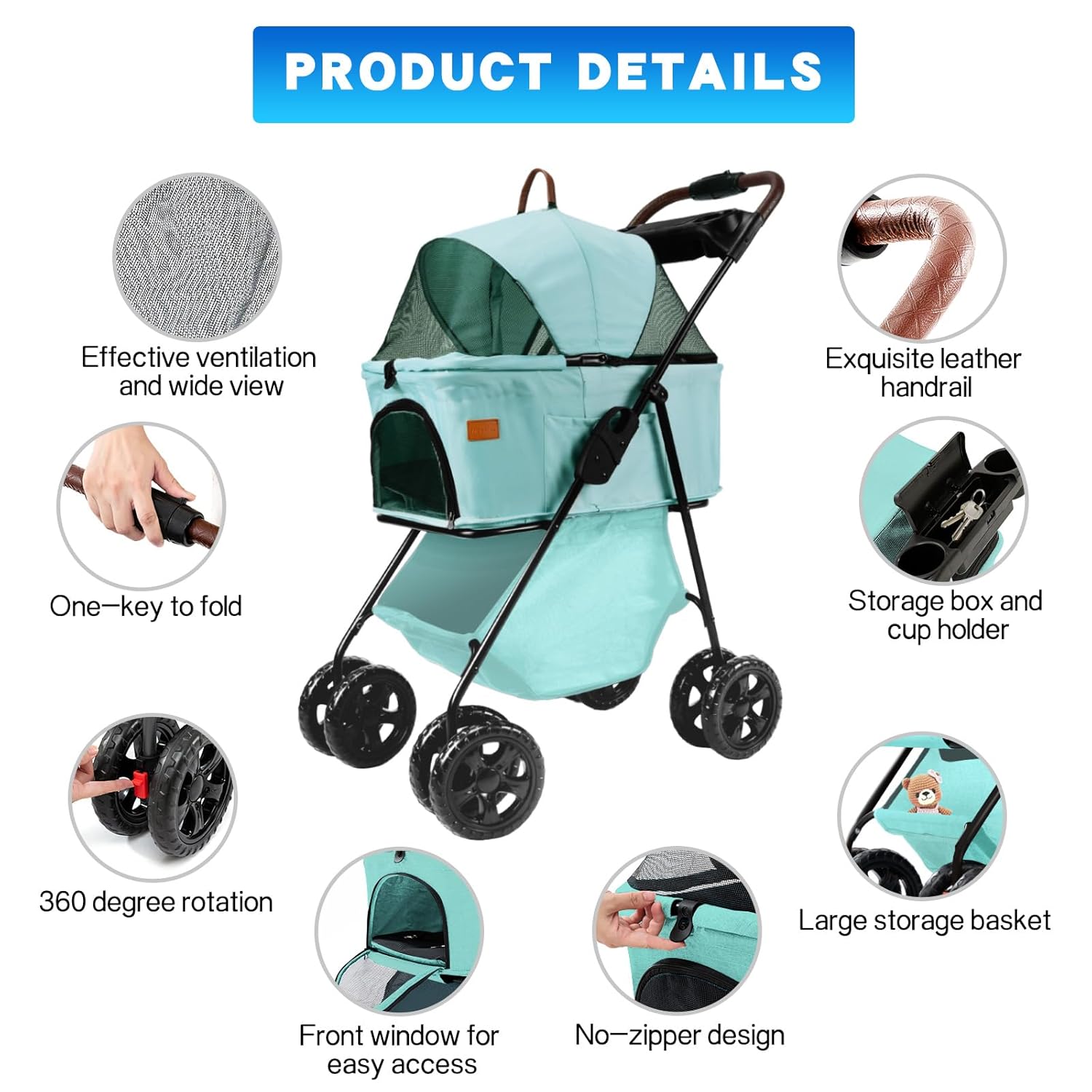 😸【Straightforward to Assemble&Fold】:The pet stroller straightforward to asseemble in a number of minutes with no instruments required. This pet stroller can be utilized as pet stroller or pet journey carriers or pet automotive seat.It may be simply folded with one hand in only one second.