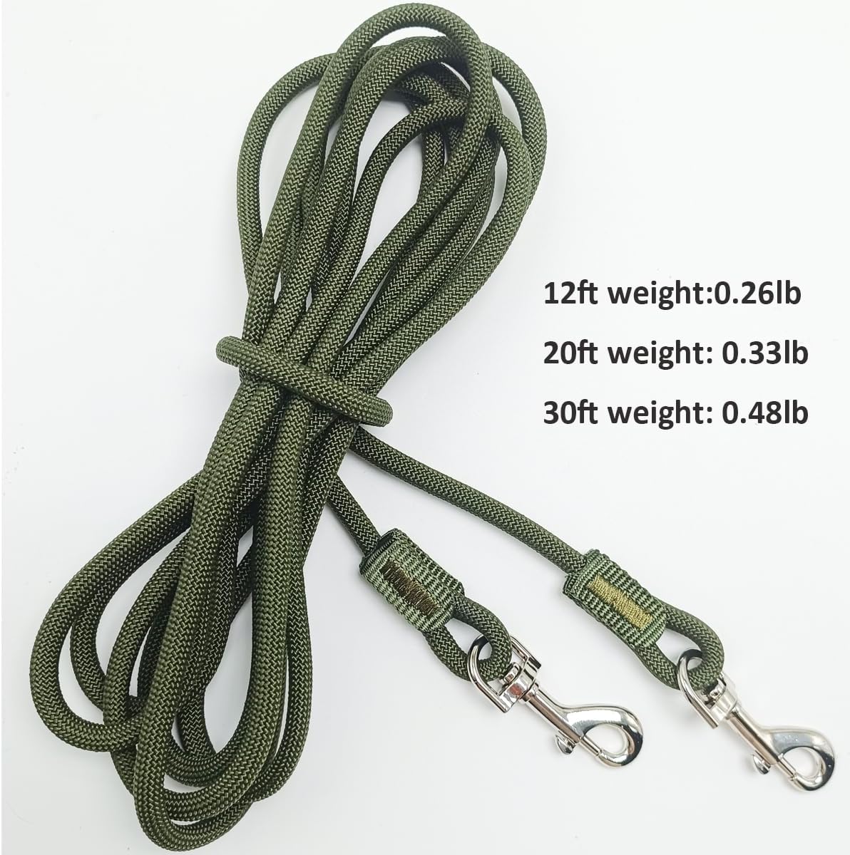 Light-weight and extremely sturdy tie-out rope for canines as much as 35 lbs. (12 ft weight:0.26 lb; 20 ft weight: 0.33 lb; 30 ft weight: 0.48 lb)