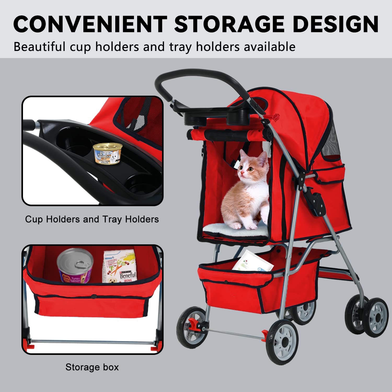 đăSimple to Assembleă Merely unfold the pet cat stroller then set up the wheels â Carriage, undercarriage, and mattress may be faraway from steel body for non-hassle cleansing – Simple to show entrance wheels rotate at 360 levels and have shock absorbers.