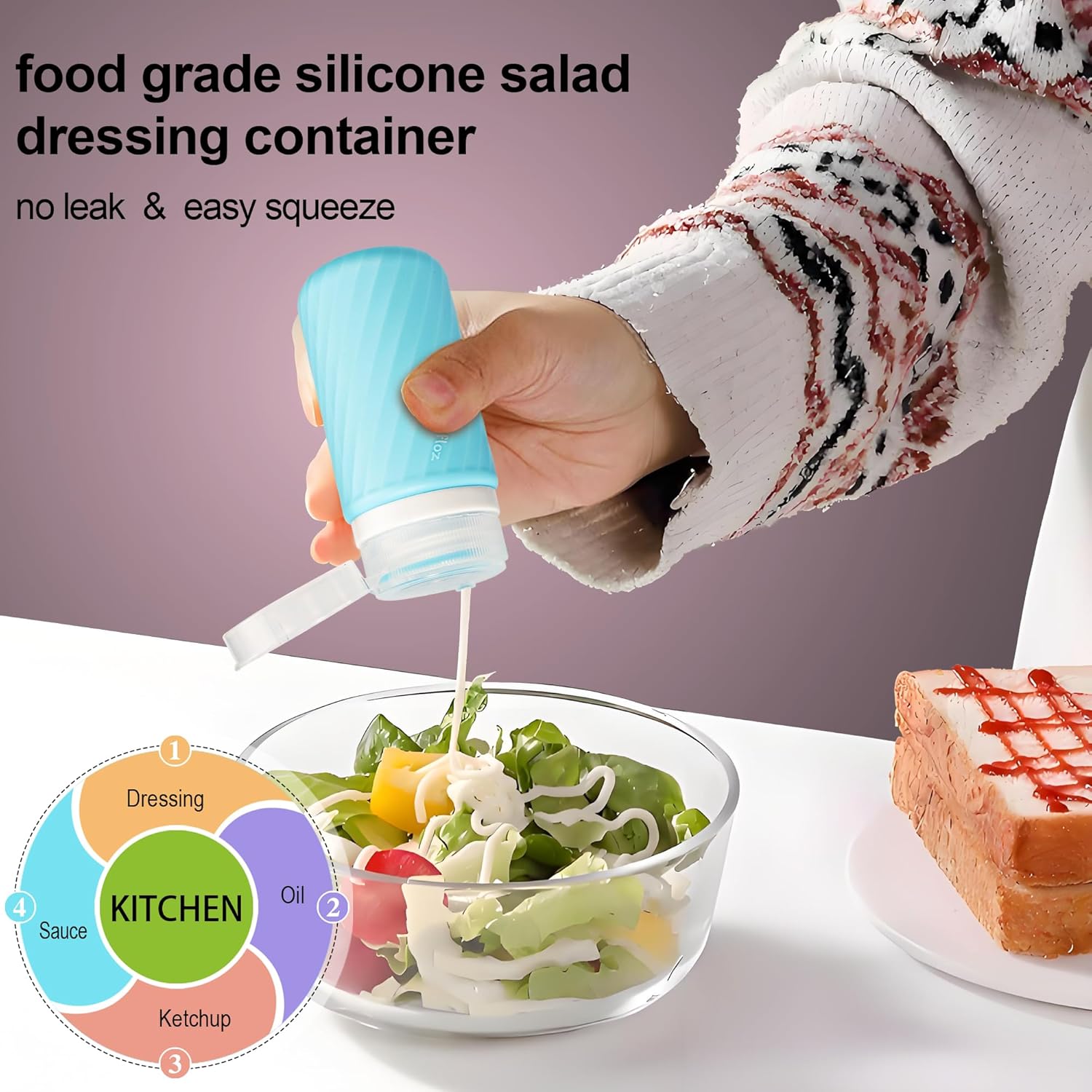 Simple to Open and Squeeze Salad Dressing Container: The flip high of sauce bottles is straightforward for folks from youngsters to aged to open. The comfortable, pliable silicone materials of the squeeze bottles for sauces lets you simply squeeze out dressings and sauces. This gives managed dishing out with out making a large number