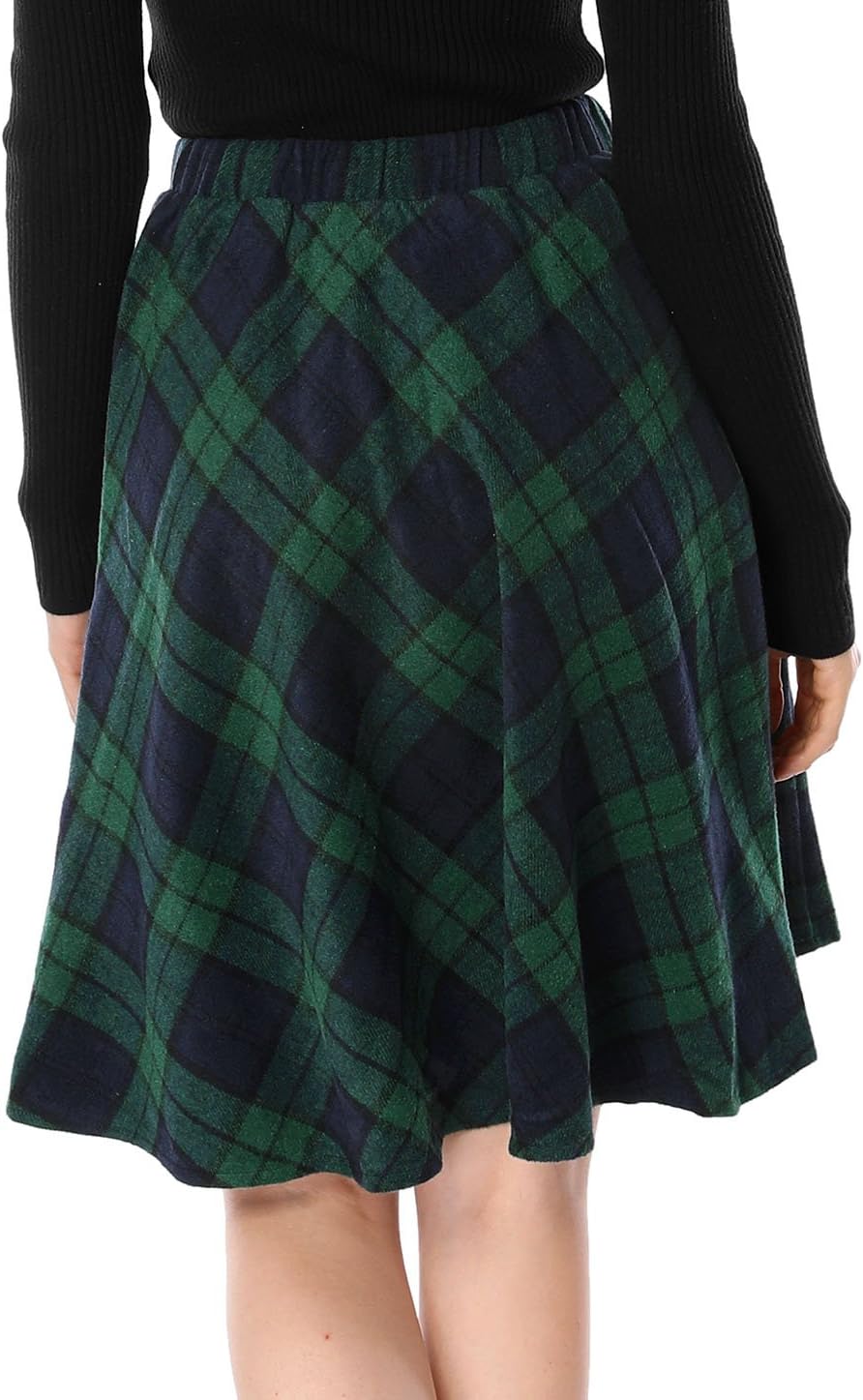 Allegra Okay Ladies’s Plaids Classic Tartan Elastic Waist Knee Size A-Line Skirt