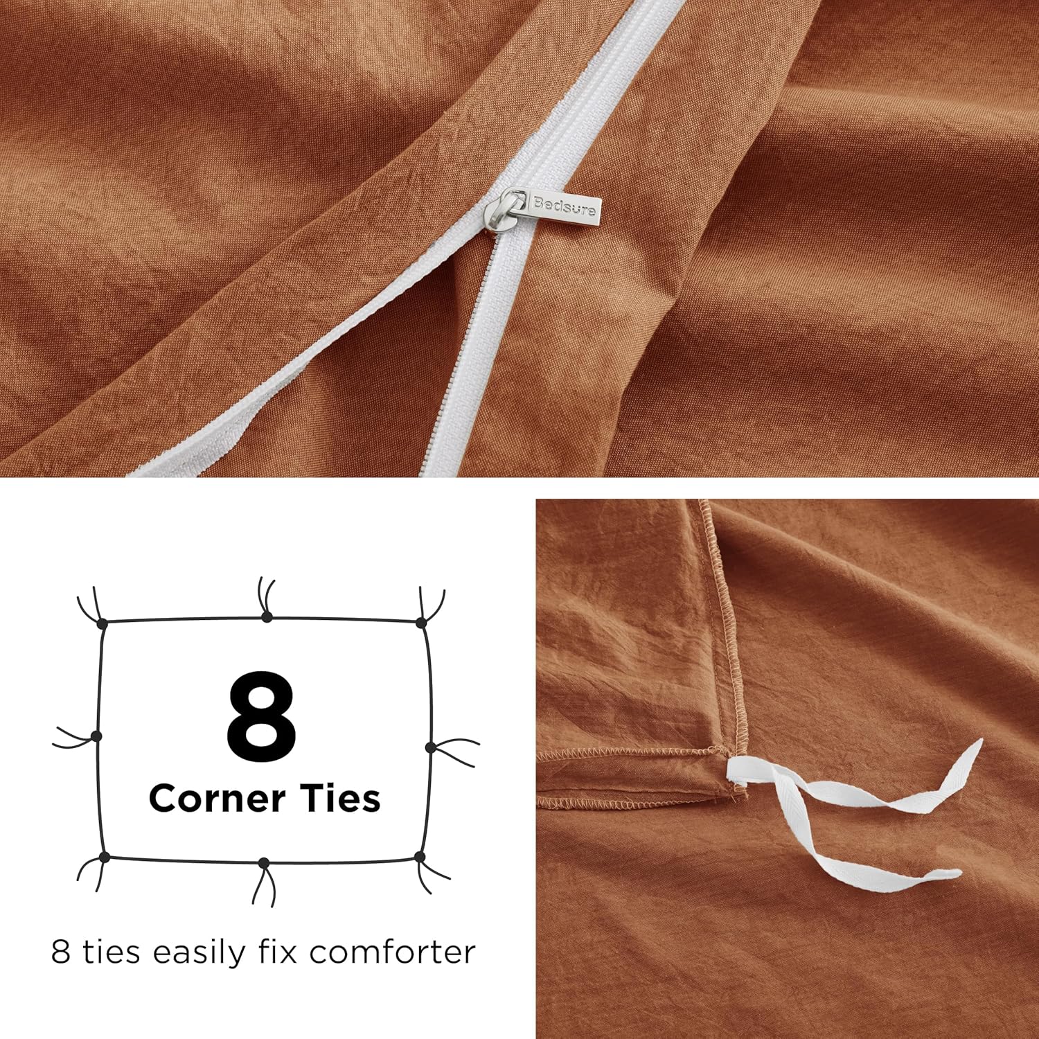 Handy Particulars: With 8 nook ties on the perimeters and corners, this 100% cotton cover cowl set snugly matches greater than 95% comforter cover inserts. The sturdy zipper closure offers quick access to swap and change the cover insert when wanted.