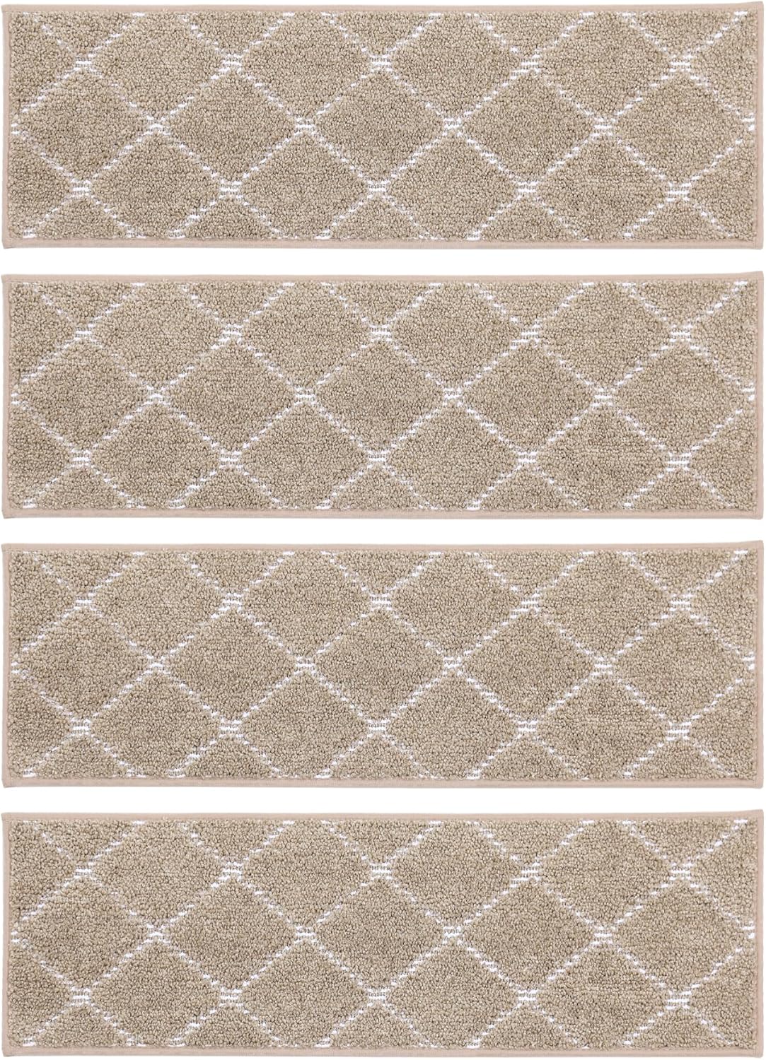 BEQHAUSE Stair Treads Non Slip Stair Runners for Wooden Steps Machine Washable Polyester Soft Stair Rugs 28inX9in Beige Stair Mats Safety Edging Stair Rugs for Dogs,Elders and Kids 4pcs