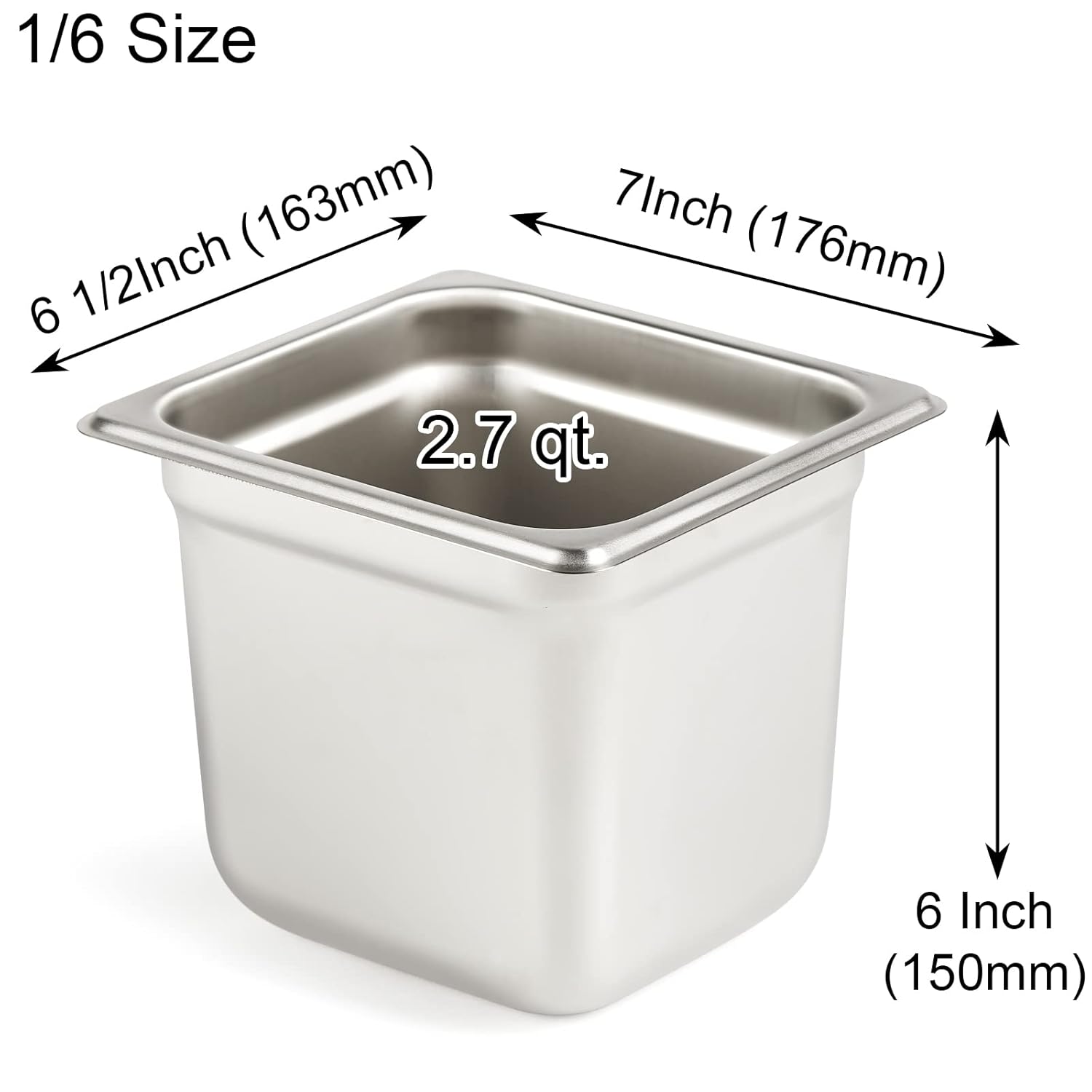 1/6 Dimension, 6″ Deep(6 Pcs) – 1/6 measurement meals pans measure roughly 7″(176mm) x 6 1/2″(163mm).This pan is 6″(150mm) in depth and holds 2.7 quartsThere are numerous sizes and depths in your selection to satisfy the distinctive requests of your day by day cooking and occasion wants.