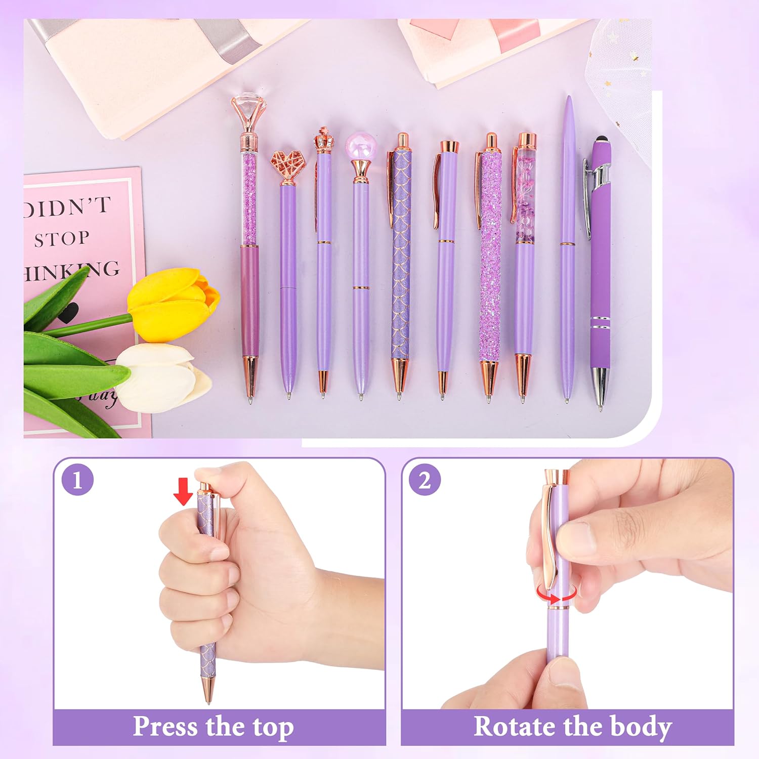 FUN BALLPOINT PENS:Our purple ballpoint pens set comprise 10 pcs pens kinds with completely different kinds.The adequate amount and chic designs can fulfill your numerous use and alternative wants in every day life.