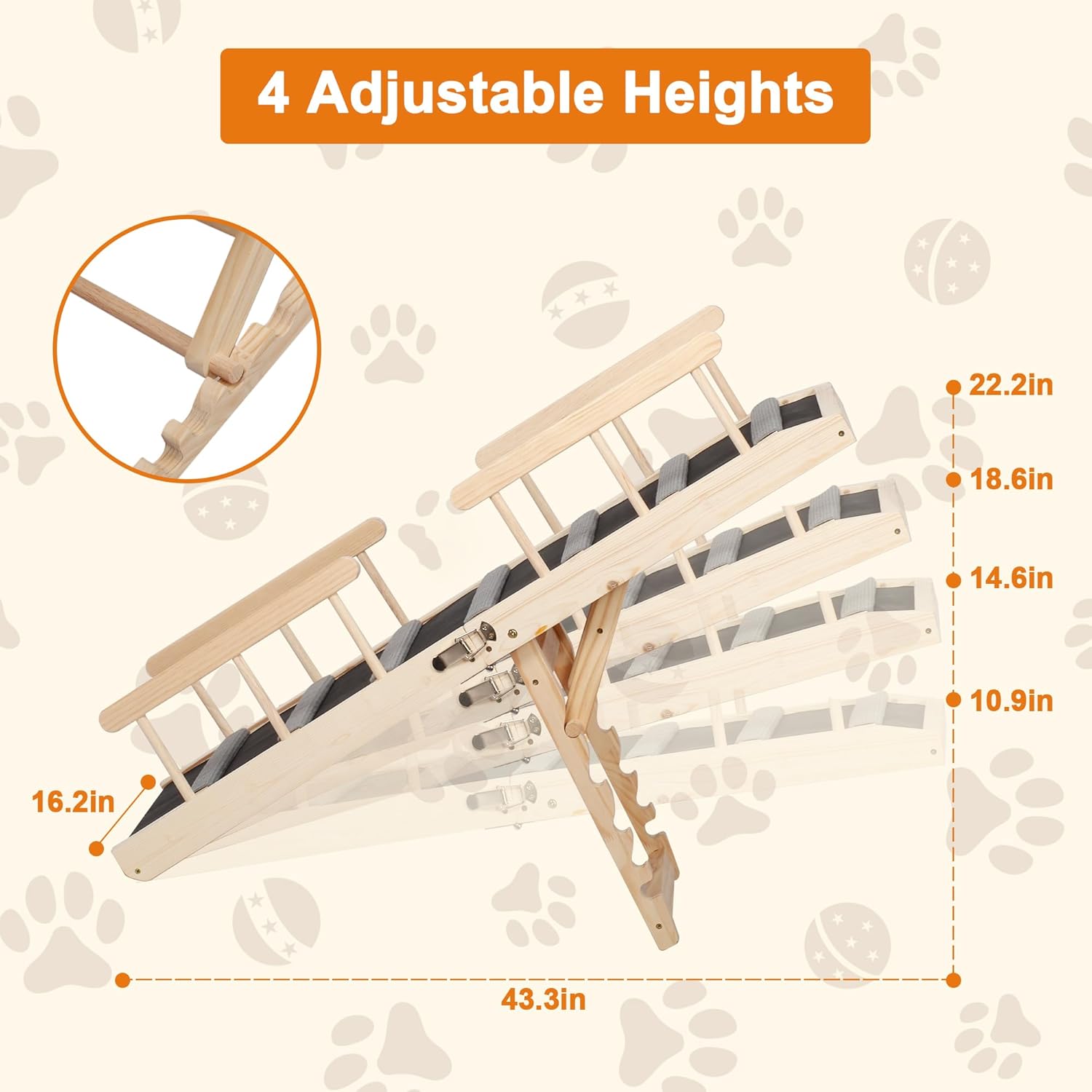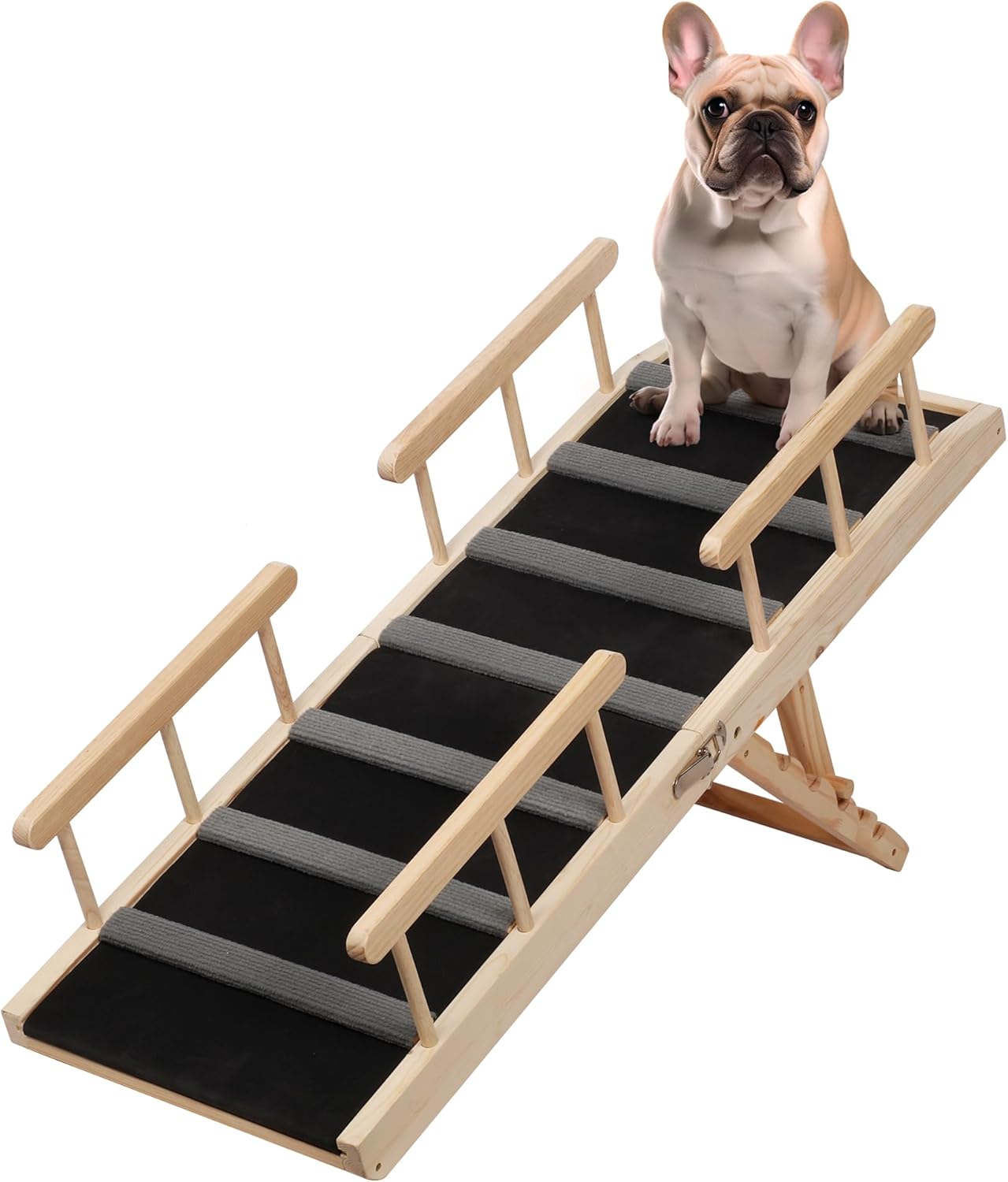 Wood Folding Pet Ramp with a mild incline supply adjustable heights: 10.9″, 14.6″, 18.6″,22.2″