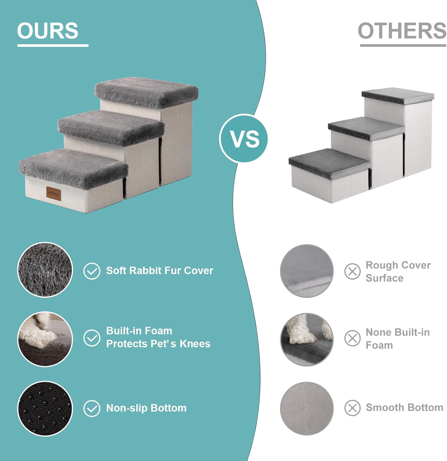 【Sturdy & Steady 】The Small Canine Stairs can help as much as 180 kilos, however are NOT SUITABLE FOR LARGE DOGS. Non-slip rubber dots on the underside assist forestall pets from slipping whereas climbing. The steps are coated with high-quality material that isn’t solely wear-resistant but additionally tender to the contact, offering reduction for pets’ joints.