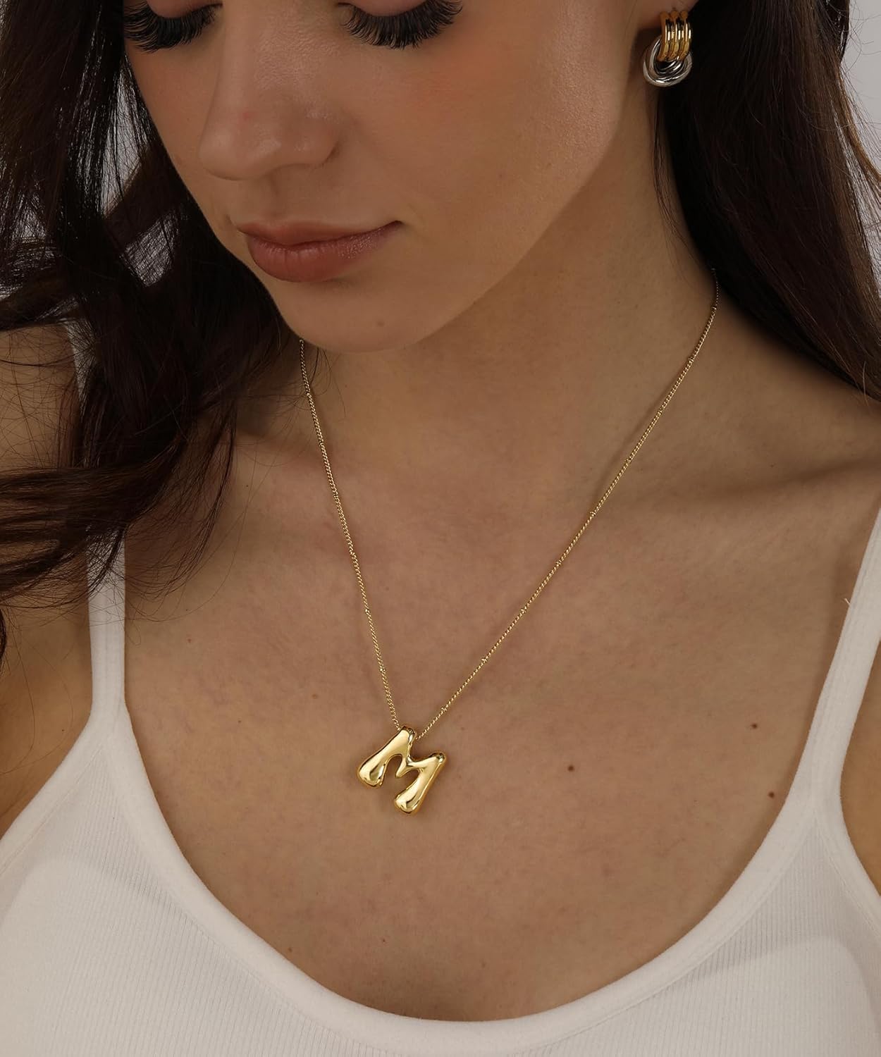 Gold Bubble Letter Necklace for Women Dainty 14K Gold Plated Balloon Initial Necklaces for Women Trendy Cute Chunky Charm Monogram Pendant Name Necklace Fashion Jewelry Gifts for Teens