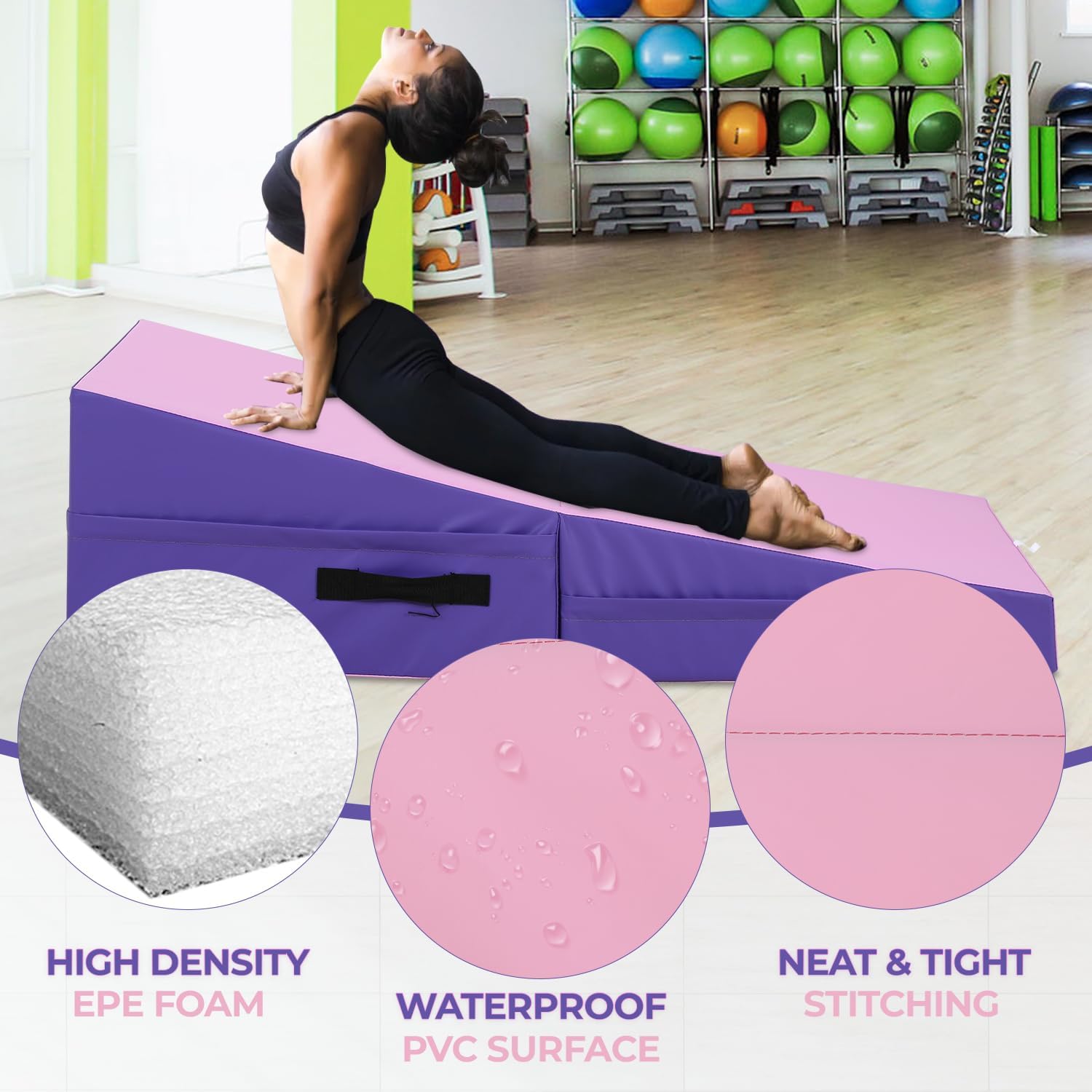 Gymnastics Mat Incline Tumbling Mats yoga mat for Home Gym, Folding Exercise Mat with Non-Slip PU Surface & Handles, Cheese Wedge Mat