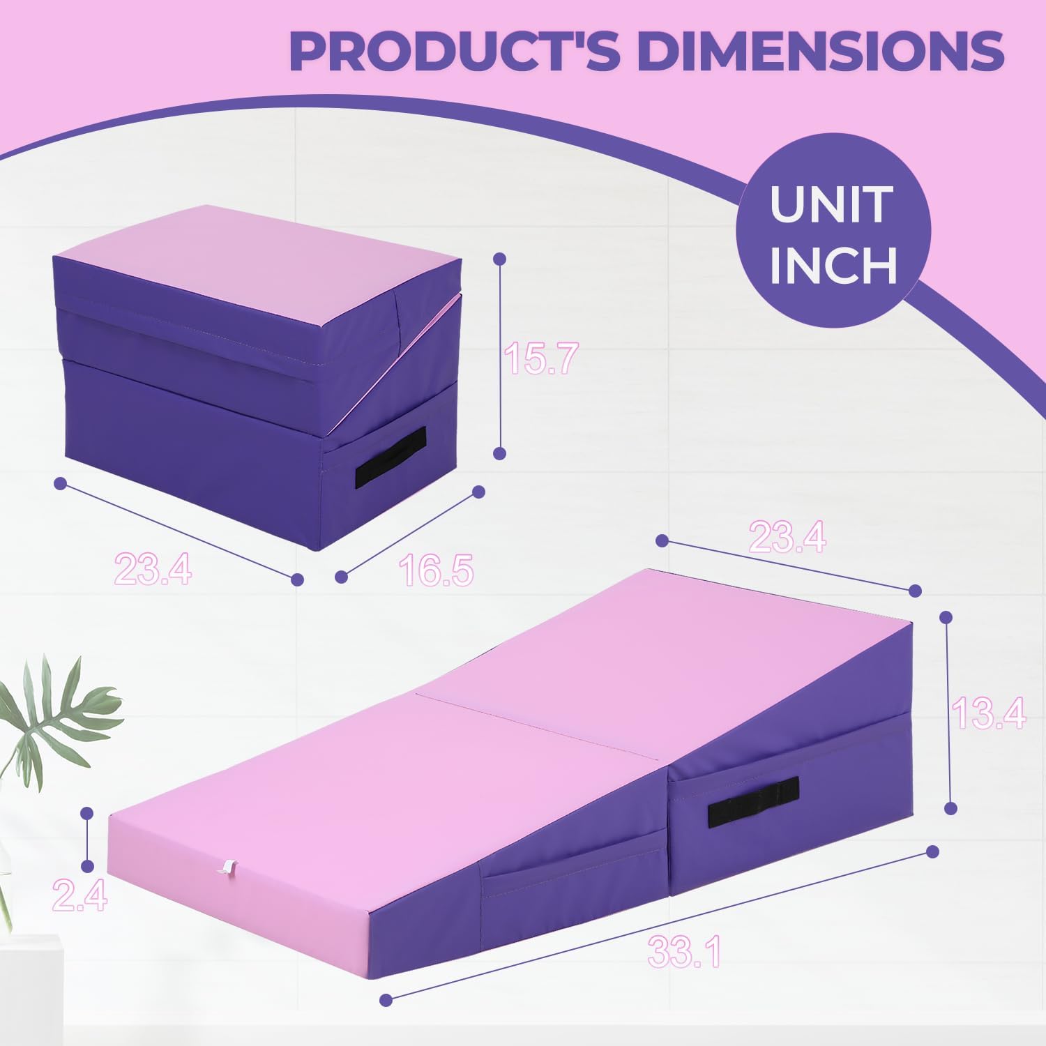 🏆【Appropriate for Many Sport】The 47.2″ L x 23.6″ W x 13.8″ H measurement gymnastics mat is good for a variety of sports activities. This fitness center mat additionally folds up right into a small cheese like dice measuring 23.6″ x 23.6″ x 17.7″, and it’s also possible to use it as a small bench. This yoga mat is nice for coaching primary tumbling and stretching workout routines indoors, and you may profit vastly from our business grade incline mat.