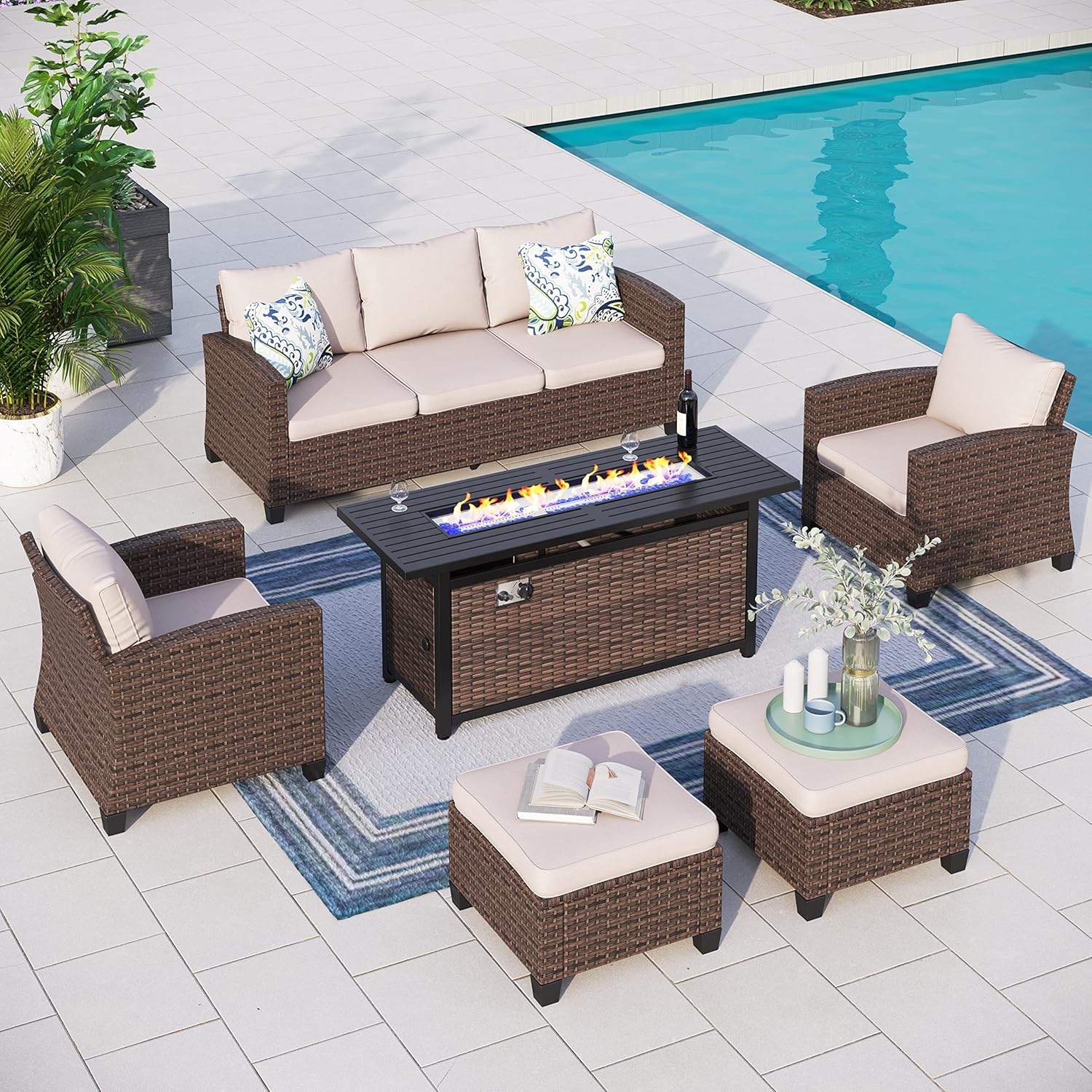 【365-Day Guarantee】This 9-seat outside couch set contains 1 x 3-seat couch, 2 x single couch, 2 x ottomans and 1 x 56″ hearth pit desk. Easy meeting course of with clear directions and instruments. For any questions concerning monitoring data or high quality points equivalent to lacking or broken components from delivery, please contact us by way of Amazon Message. We are going to reply inside 24 hours to discover a resolution or ship substitute components to you asap