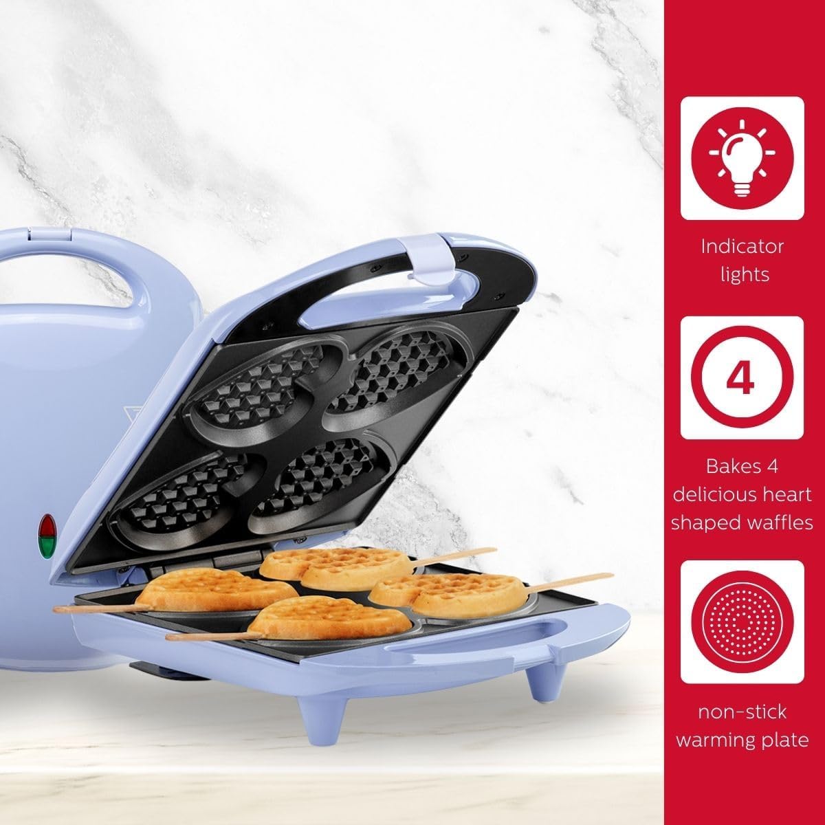 WAFFLES AT ANY TIME – Make 4 scrumptious heart-shaped waffles in minutes for on a regular basis meals! If you wish to entertain company, you’ll be able to even use popsicle sticks to create a enjoyable twist on breakfast, brunch and snacks.