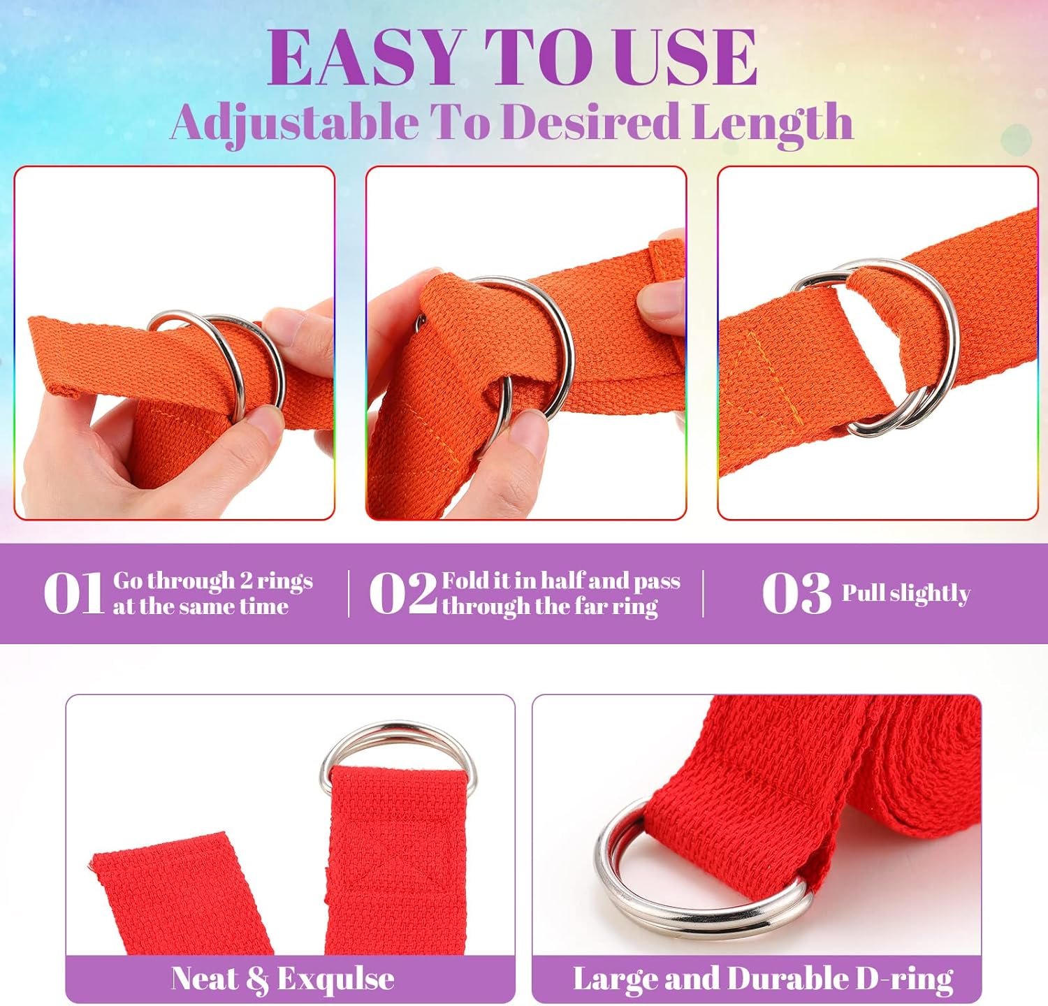 Steady for Lengthy Time Use: primarily fabricated from polyester cotton materials, the yoga strap belt is steady and lasting, smooth and cozy, is not going to trigger extreme friction and defend your arms nicely