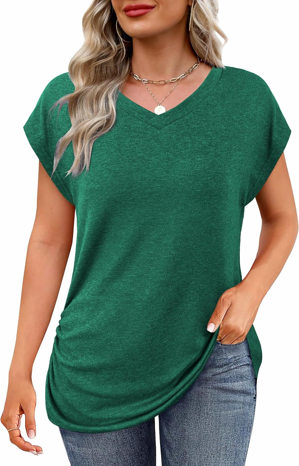 JomeDesign Womens Tops V Neck Cap Sleeve Tshirts Casual Cute T Shirts Summer Clothes Basics Tee
