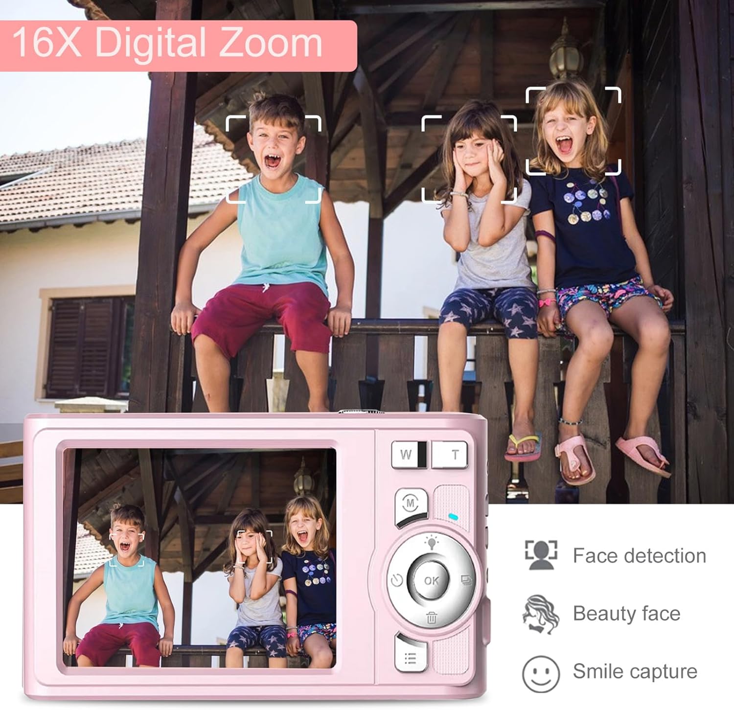 【Straightforward To Use Multifunctional protable Children digital digital camera】 Say goodbye to your disposable digital camera! The controls and capabilities are straightforward to function making this the right selection for youngsters, teenagers and younger adults. This youngsters digital camera helps 16x digital zoom, permitting you to simply zoom in or out by urgent the W/T button throughout video recording and for taking nonetheless photographs. Plus, this small digital camera can also be outfitted with many options similar to anti-shake, face recognition, smile detection, steady taking pictures, self-timer, time stamp ON/OFF, making this the right digital camera.