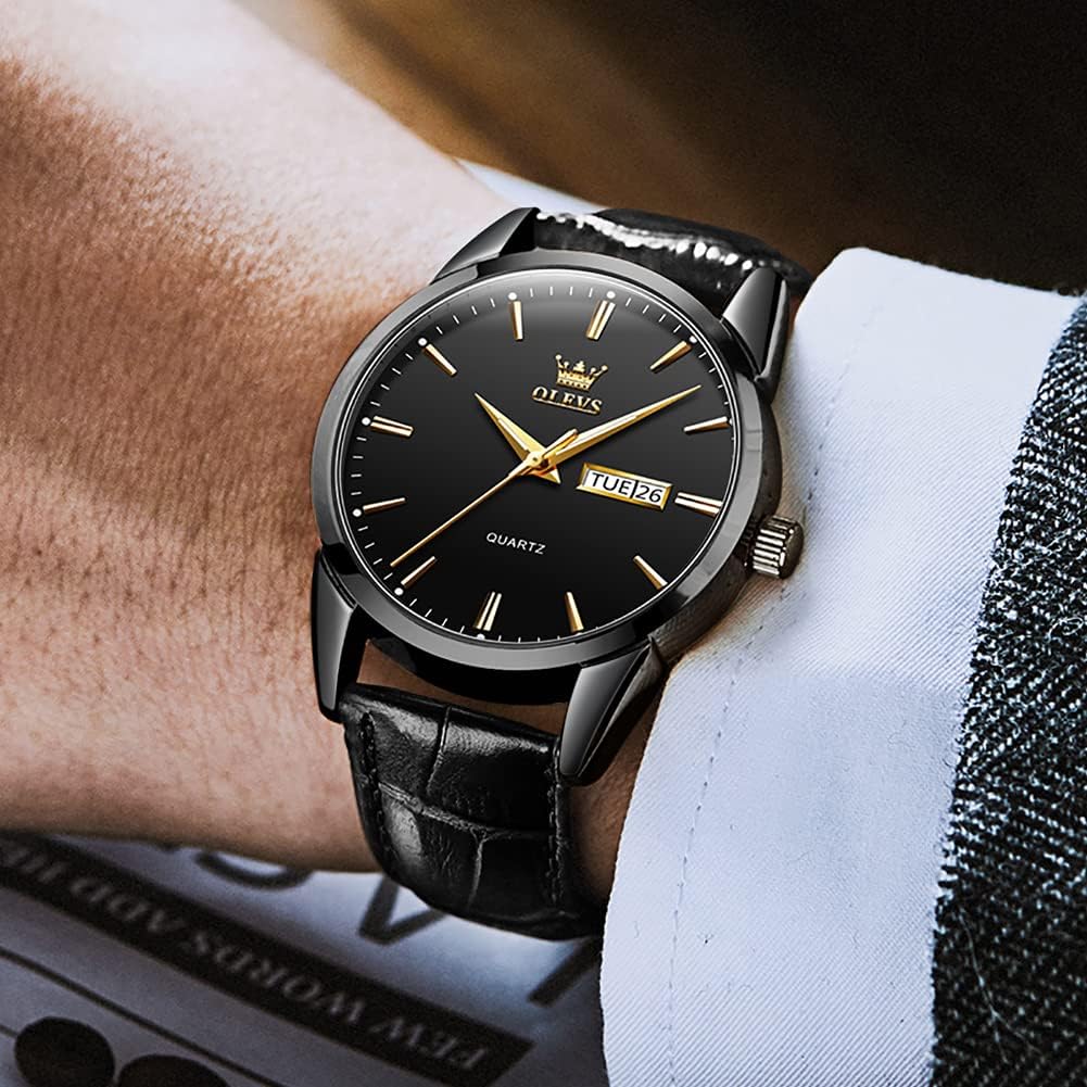 OLEVS Look ahead to Males Chronograph Brown Leather-based Gold Case Analog Quartz Trend Enterprise Costume Massive Face Males Watch Day Date Luminous Waterproof Informal Male Wrist Watch Black/Blue/White Dial
