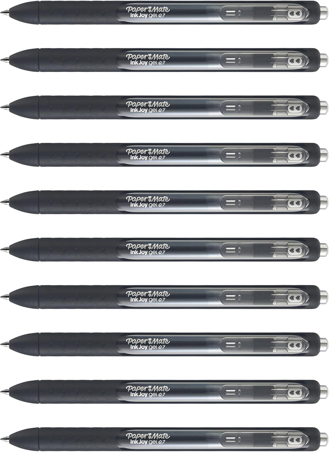 Is available in a Pack: Consists of 10 Black gel pens for a long-lasting provide