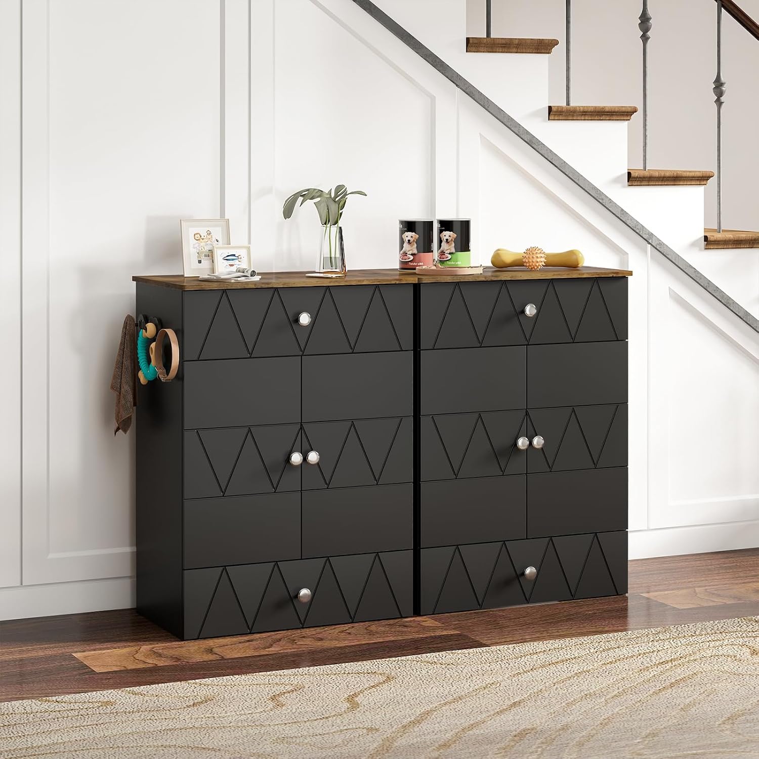 【All-in-One Storage Answer】This pet feeding station presents an built-in resolution on your pet’s meals, toys, leashes, collars, and different necessities. That includes a storage cupboard, adjustable cabinets, 3 hooks and a rolling drawer for canine bowls, it retains pet provides organized in a single handy house.