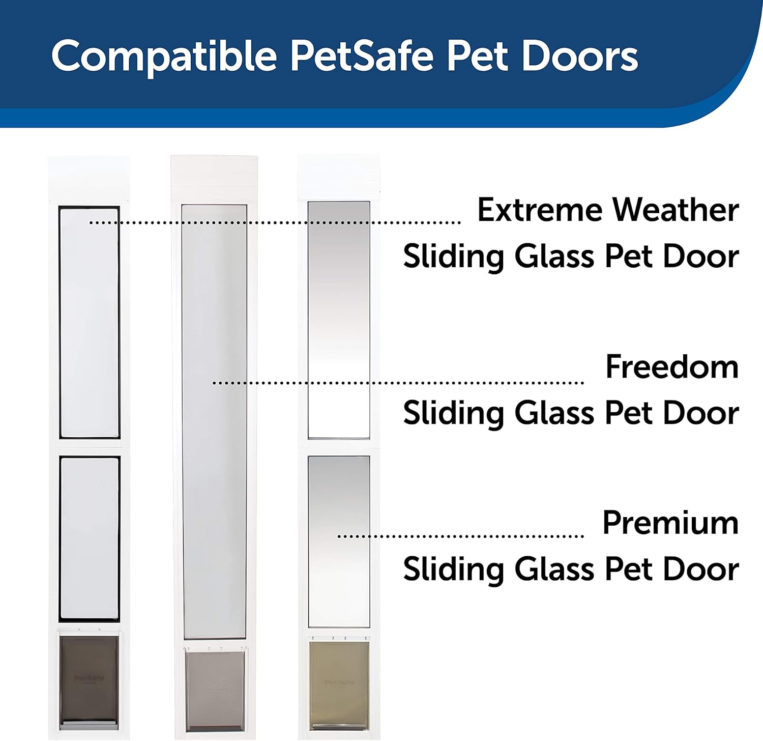 COMPATIBLE PET DOORS: The safety bar works with the PetSafe Excessive Climate Sliding Glass Pet Door, PetSafe Sliding Glass Pet Doorways and PetSafe Freedom Aluminum Patio Panels