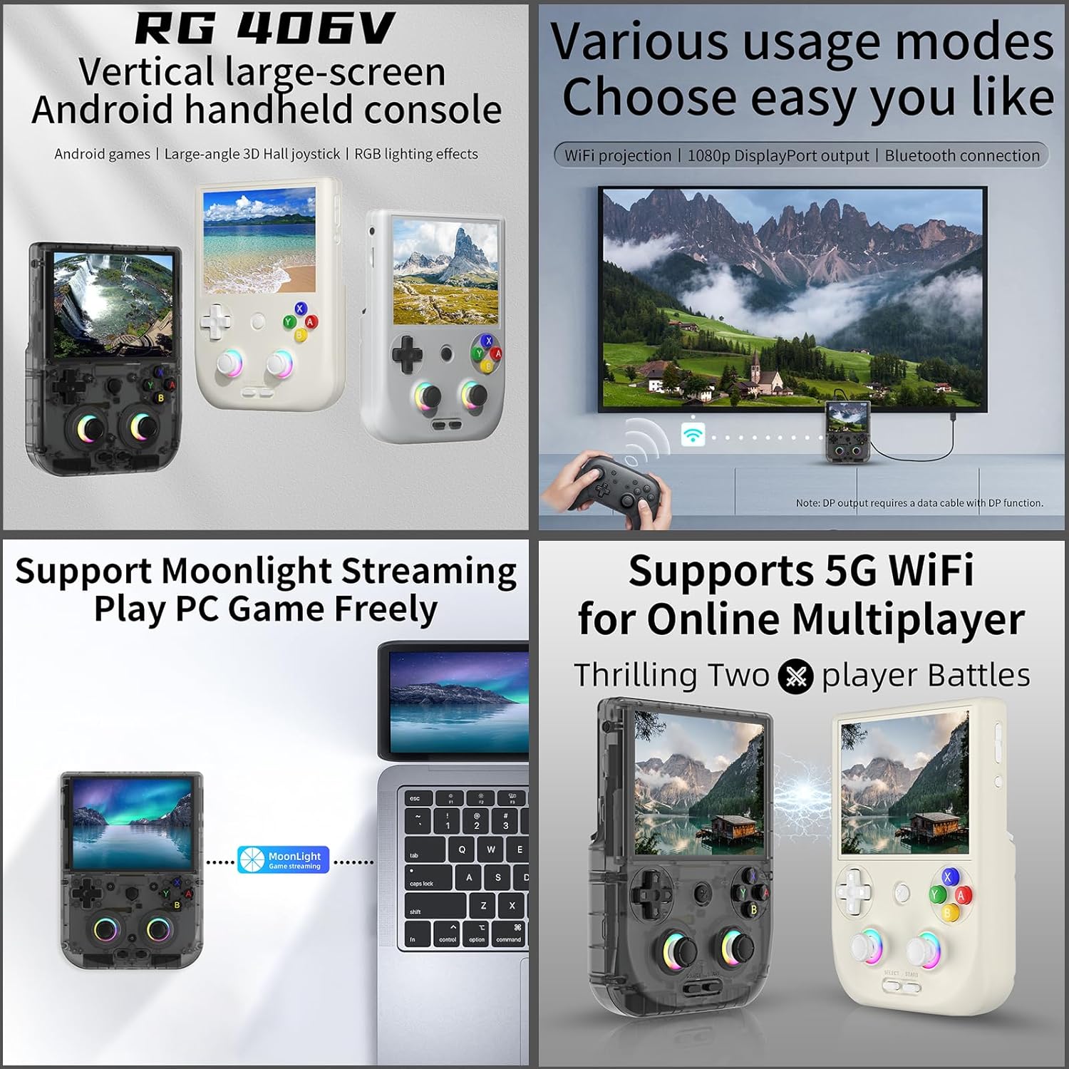 The rg406 v helps Wi-fi Display screen Casting-Think about taking part in your favourite video games on the large display—this console has you coated with wi-fi display casting! Merely sync it to your TV, seize your Bluetooth controller, and expertise multiplayer motion proper out of your sofa. It’s appropriate for carrying aroundis an amazing for boyfriend, husband, brother, son, father and buddies for birthday, Father’s Day, Christmas, Valentines Day, Thanksgiving Day and so forth.