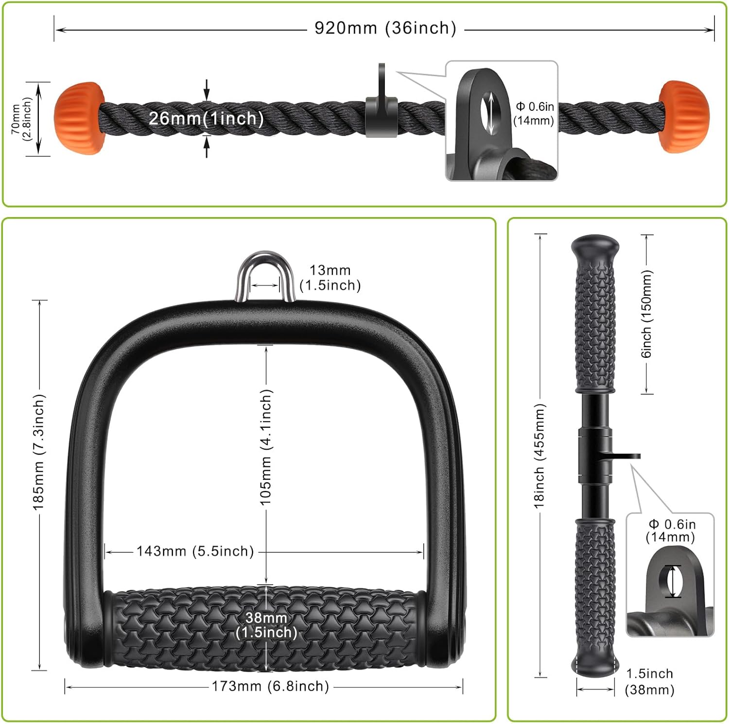 Heavy obligation development with clean weld craftsmanship, assist 800 lbs every. Free swivel anchor retains you from injuring your wrist. Tricep rope is product of heavy obligation nylon with mushy rubber ends hold your palms from slipping.