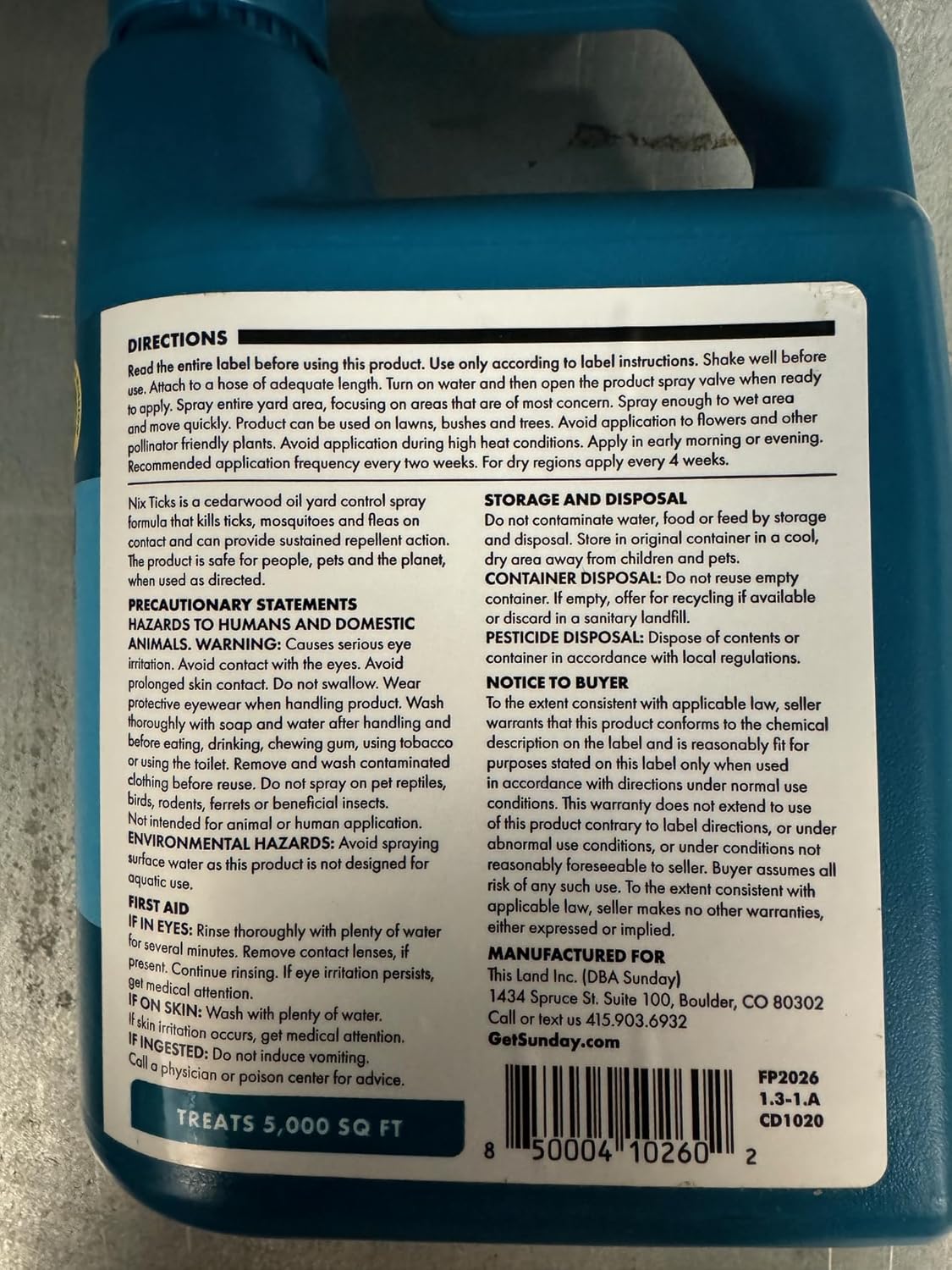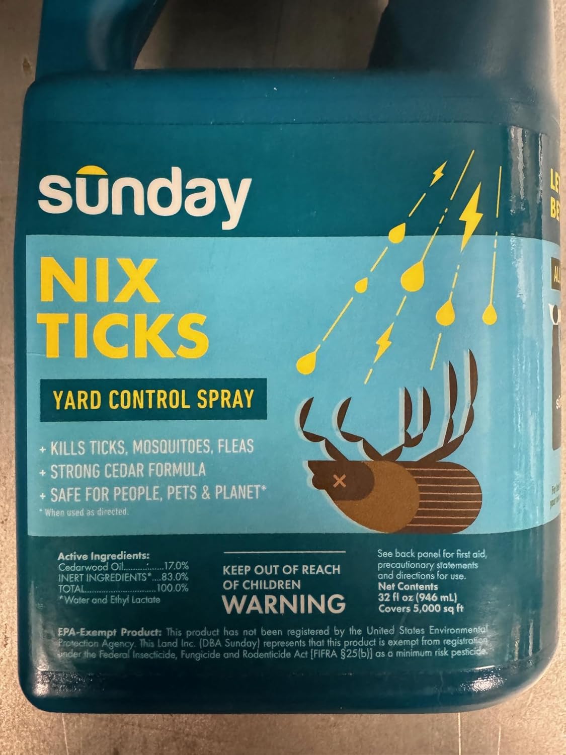 ENVIRONMENT-FRIENDLY: Say goodbye to ticks the eco-friendly method with Sunday’s Nix Ticks—a guilt-free tick spray for yards that protects your private home and family members.