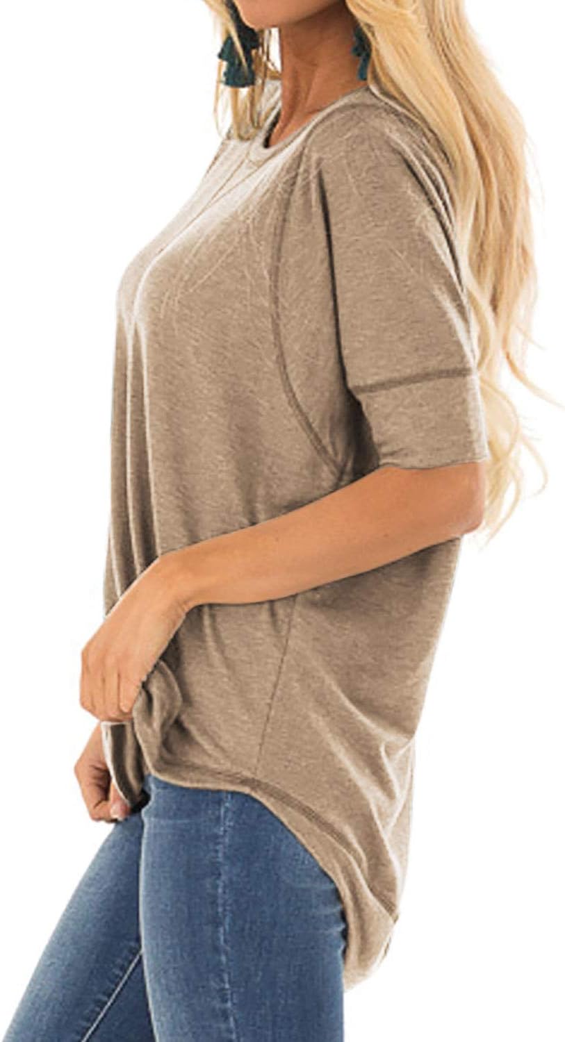 T Shirts for Womens Loose Fit Short Sleeve Casual Tops Cotton Ladies Tshirts Pullover Tees Crew Neck Side Split Tops