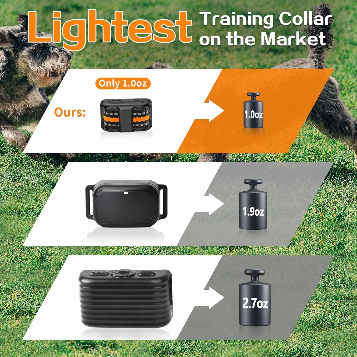 【Compact and Light-weight Design】: Boasting the smallest and lightest electrical canine collar available on the market. Dimensions at 1.8*1 in and weighing just one.0oz.