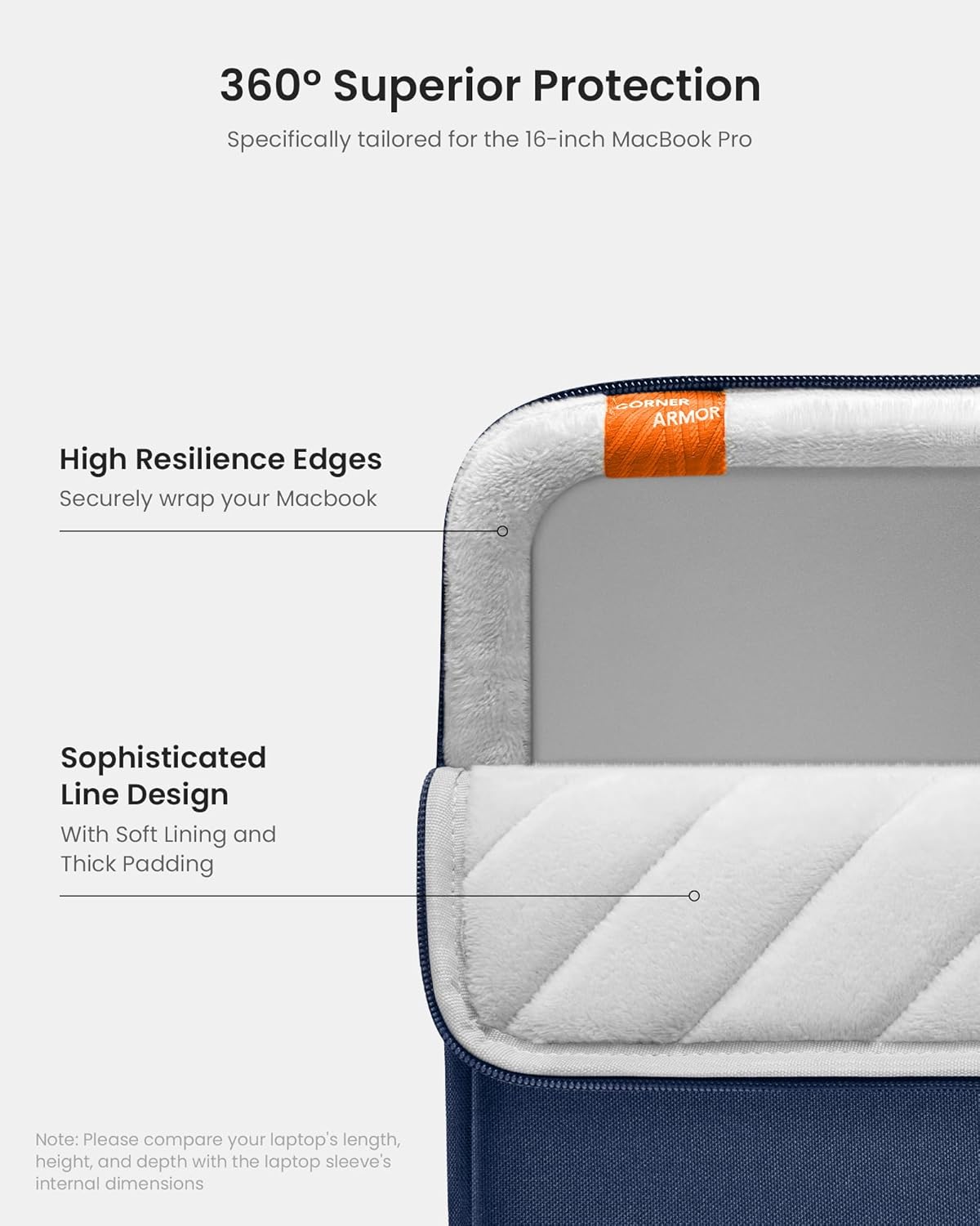 Navy-Grade Safety: To fight the hardest conditions: from falls to shocks to vibrations, tomtoc proposed the idea of 360 safety and designed the laptop computer sleeve with CornerArmor Know-how, excessive resilience edges, and high-density tender padding. It handed the Navy-Commonplace-Drop-Check whereas additionally sustaining a modern design
