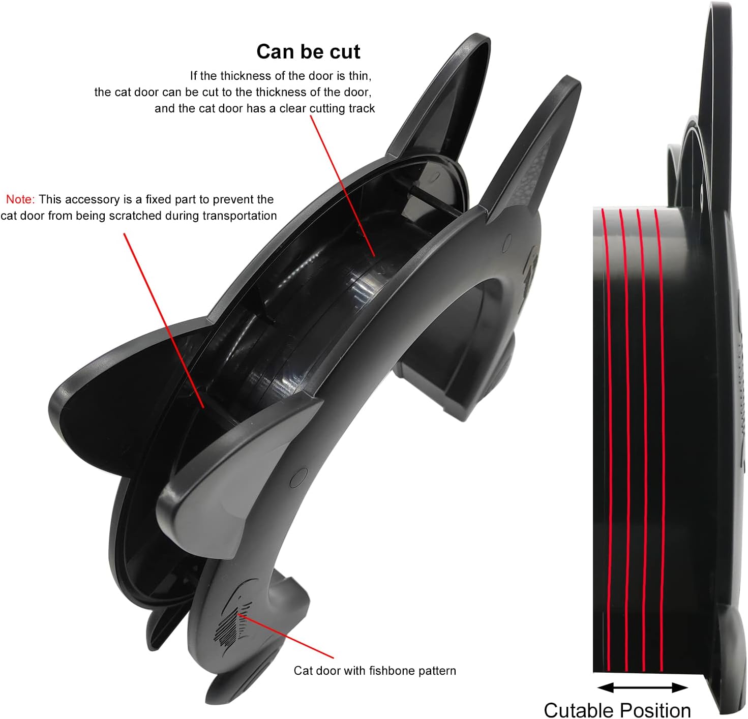 【SAFE AND DURABLE】:The indoor cat door is fabricated from ABS materials, which is wear-resistant and sturdy.The perimeters are clean and burr-free to guard the cat from being scratched.Clean line design, paintable supplies, completely matching your door and ornament.